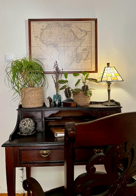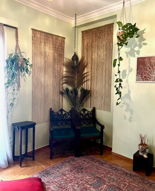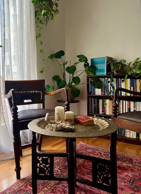 The environment in which we meet shapes the therapeutic relationship, supporting presence, attunement, and emotional safety (Mitchell, 1988). I’ve created my office as a calm, inviting sanctuary—filled with greenery, antiques, and touches that hold meaning for me— a “transitional space” (Winnicott) that can nourish both my clients and myself and allow exploration and change to unfold. Here, we can “stand in the spaces” (Bromberg) where connection, reflection, and growth become possible within the therapeutic relationship.